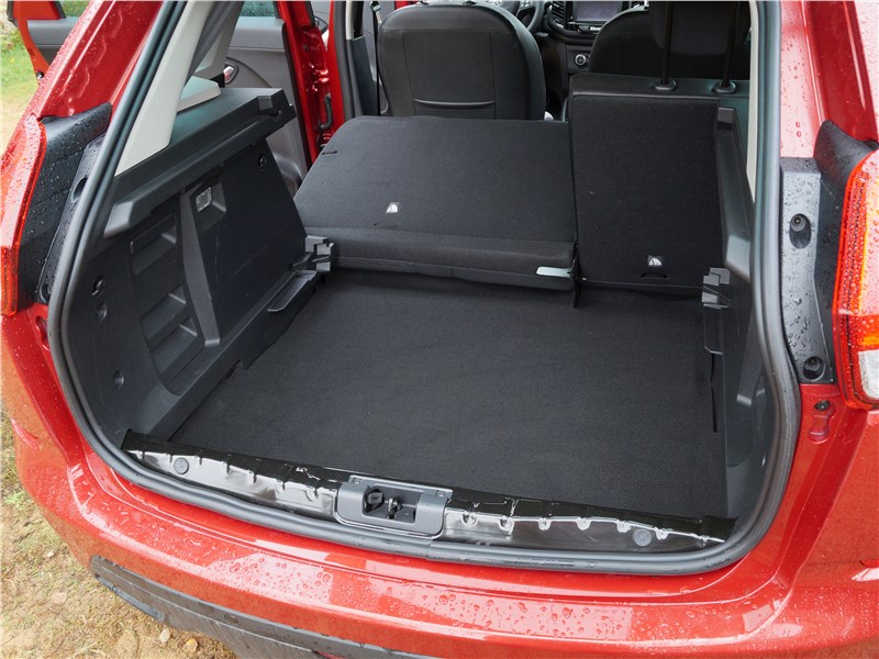 Его объем составляет 361 литр. Немного, но при сложенном заднем диване он возрастает уже до 1 207 литров. Если же вдобавок разложить и переднее пассажирское кресло, можно добиться объема в 1 514 литров, а еще свободно разместить внутри длинномеры типа лыж, профилей и прочего. Этому способствует и разрезная спинка заднего дивана, раскладывающаяся в пропорции 60х40.