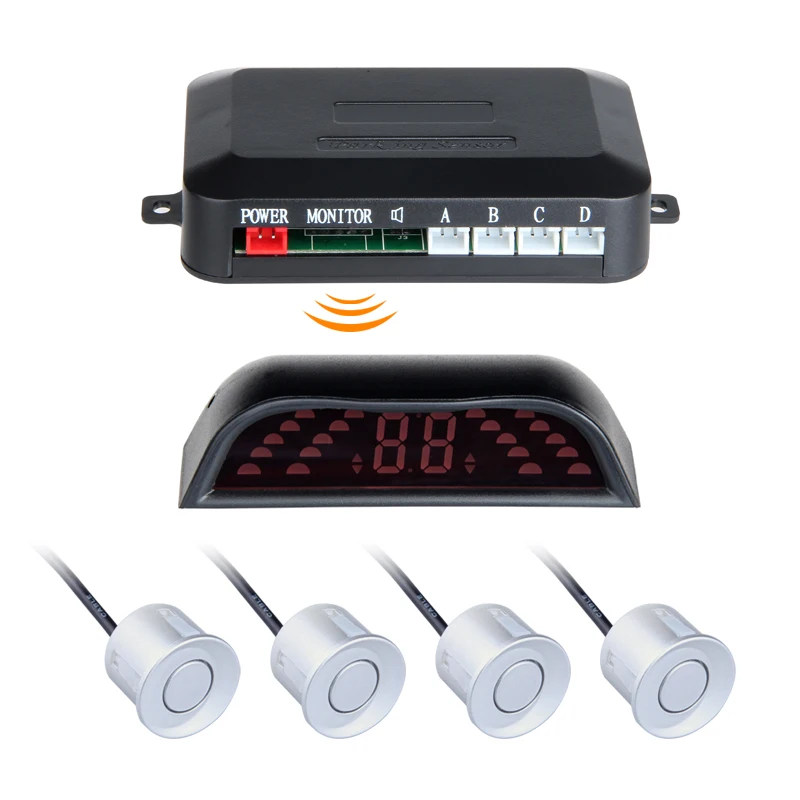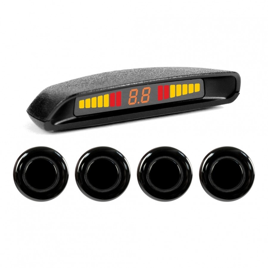 Что показывает дисплей парктроника? Это зависит от типа экрана радара. Одними из самых распространенных и недорогих моделей являются устройства, оснащённые светодиодным дисплеем, меняющим цвет (речь идёт, например, о ParkAWay E-4B-SH). Если экран загорается зелёным светом, это сигнализирует о наличии препятствия, по мере приближения к нему, он становится красным.
