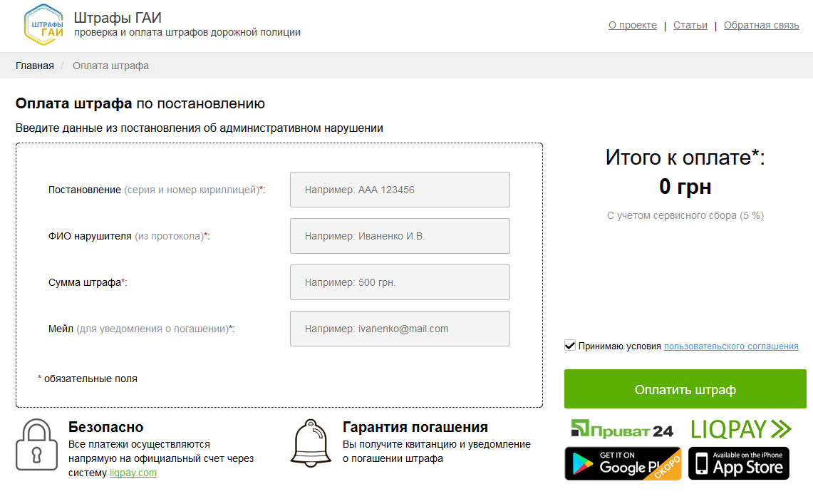 - Для оплаты штрафа вам понадобится штраф за нарушение правил дорожного движения .