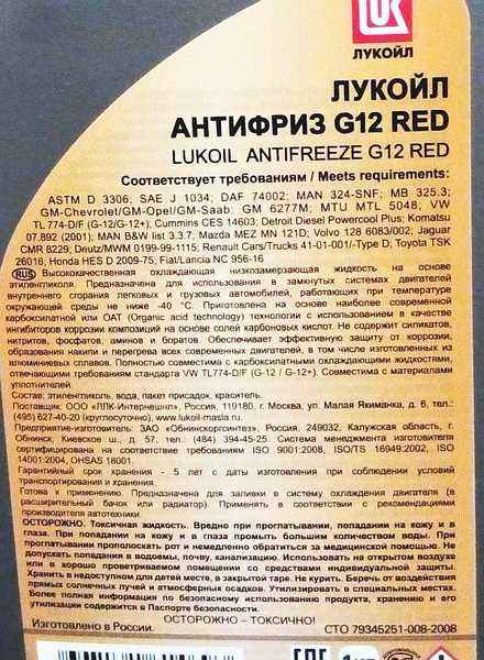 Антифриз ЛУКОЙЛ G12 Red: Характеристики, артикулы и отзывы
